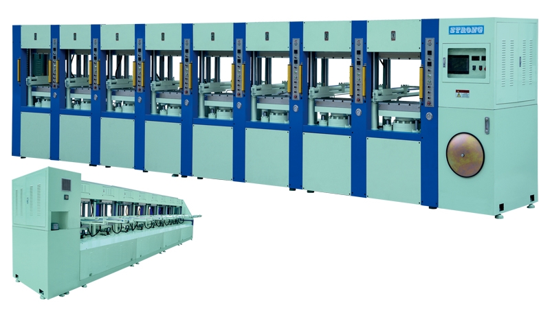 QF-8206AS倒料雙色發(fā)泡成型機一、獨特的機身設(shè)計,每站整體油缸四柱鎖架,不斷裂,不松動, 穩(wěn)定性強;