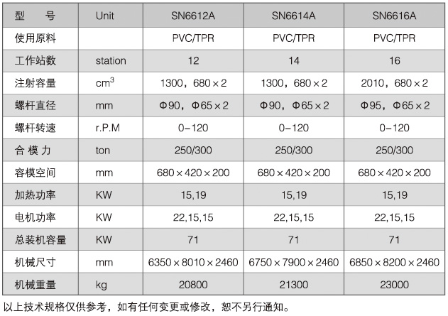1.本機配備多功能操作系統,專業生產以PVC/TPR為原材料的幫面雙色型三色雨鞋制品,同時也可以生產單色、雙色普通雨鞋制品。